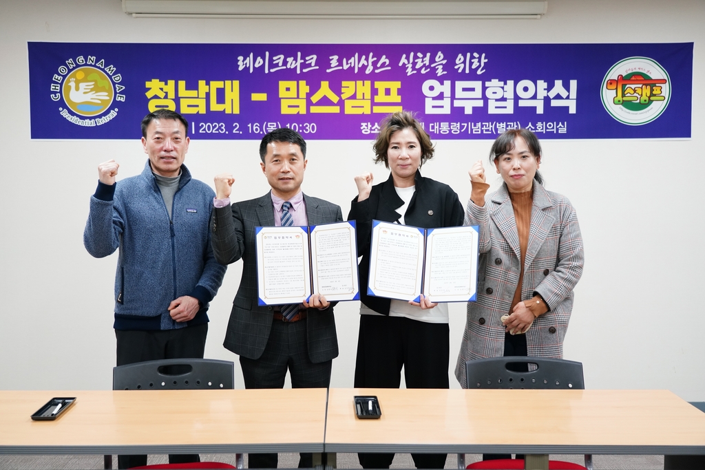 맘스캠프와 청남대관리사업소는 16일 시민 참여형 문화행사 개최 등을 내용으로 한 업무협약을 체결했다.