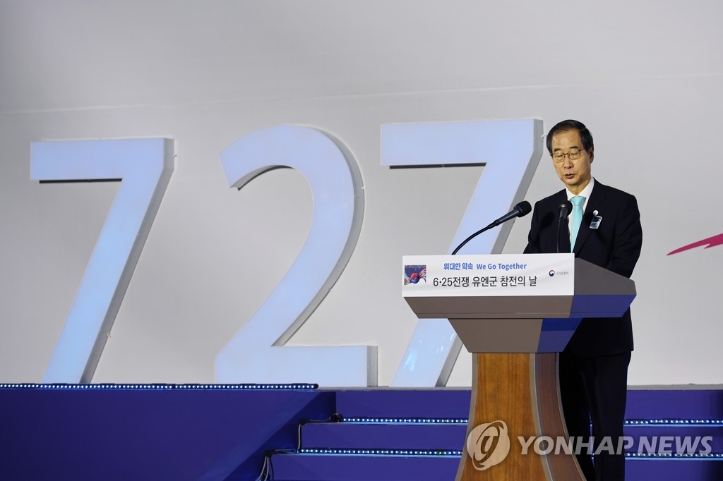 "Even at this moment, North Korea is threatening South Korea's security," Prime Minister Han Duck-soo said in a commemorative speech on the 69th anniversary of the armistice that ended the conflict. "South Korea will always remember the love for mankind demonstrated by the U.N. war heroes."