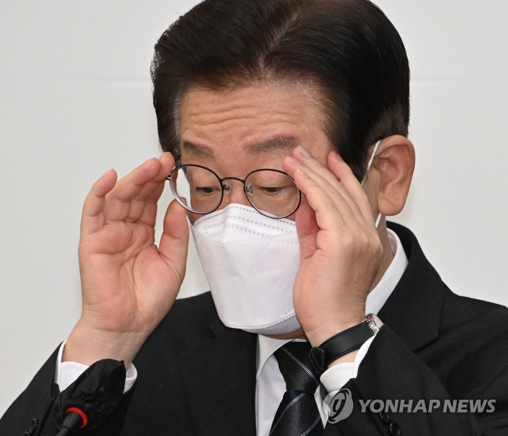 | ▲ Main opposition Democratic Party Chair Lee Jae-myung adjusts his glasses on Oct. 20, 2022. (Pool photo) (Yonhap) |