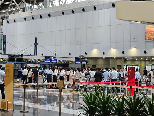 | ▲ A crowd of North Korean people waits to board an Air Koryo flight to Pyongyang at Beijing Capital International Airport on Aug. 26, 2023. (Yonhap) |