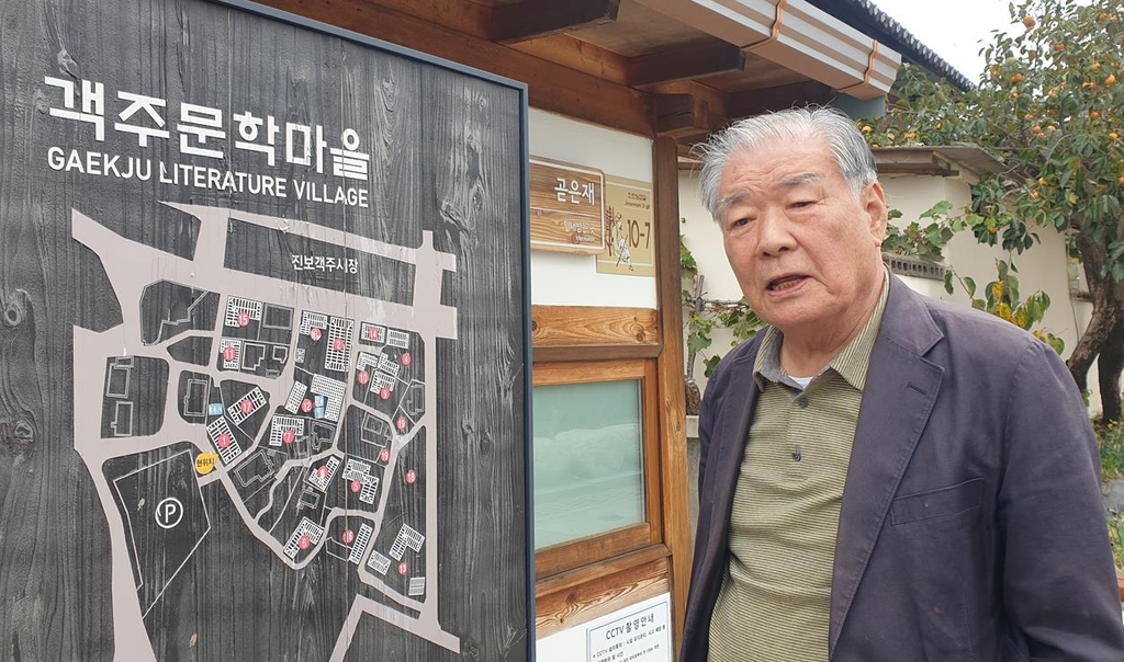 | ▲ '객주문학마을' 돌아보는 김주영 작가 (청송=연합뉴스) 이은정 기자 = 지난 21일 청송의 '객주문학마을'에서 이야기를 나누는 김주영 작가 |