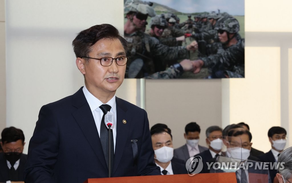 | ▲ This file photo, taken Oct. 31, 2022, shows Eom Dong-hwan, the head of the Defense Acquisition Program Administration, speaking during a parliamentary session at the National Assembly in Seoul. (Yonhap) |