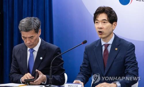 | ▲ Vice Oceans Minister Park Sung-hoon (R) talks during a daily briefing on the Fukushima issue on July 25, 2023. (Yonhap) |