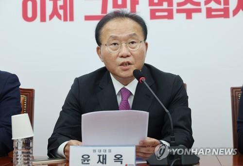 | ▲ Rep. Yun Jae-ok, the floor leader of the ruling People Power Party, speaks during a party meeting in Seoul on July 10, 2023. (Yonhap) |