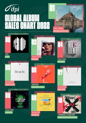 | ▲ This photo of the Global Album Sales Chart 2022 is provided by the International Federation of the Phonographic Industry. (PHOTO NOT FOR SALE) (Yonhap) |