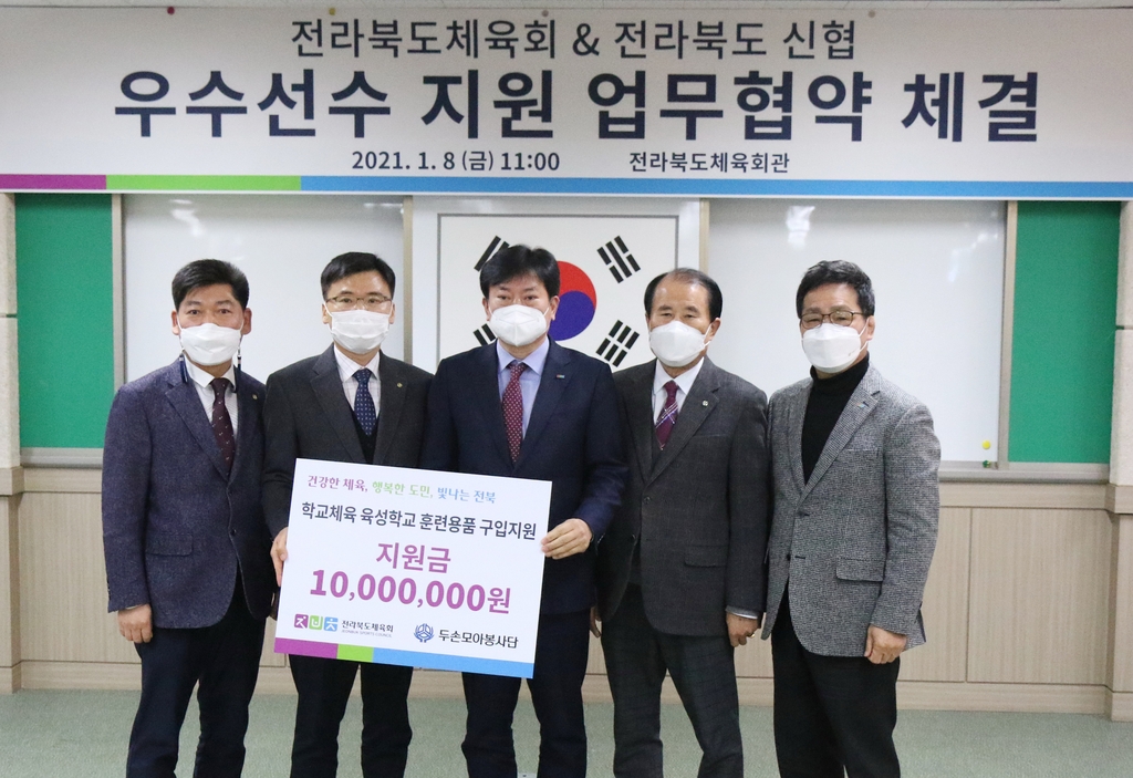 (전주=연합뉴스) 임채두 기자 = 전북도 체육회는 신협중앙회 전북지부 두손모아봉사단과 '우수 선수 지원 업무협약'을 체결했다고 8일 밝혔다.