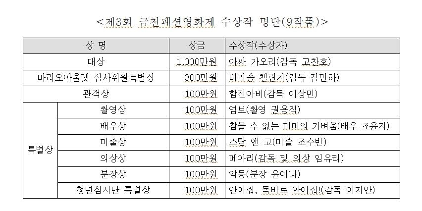 | ▲ 제3회 금천패션영화제 수상작 [금천구 제공. 재판매 및 DB 금지] |