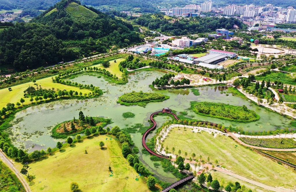 수산봉 숲속 둘레길, 나비다리, 낙우송길, 사색정원, 사랑정원 등 다양한 꽃과 나무로 조성한 테마공원과 조형물로 볼거리가 가득하다.