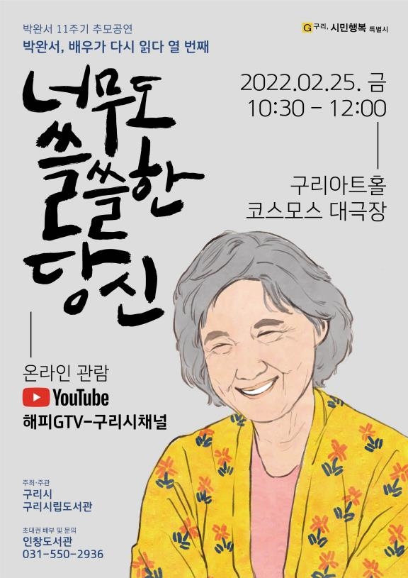 (구리=연합뉴스) 김도윤 기자 = 경기 구리시는 25일 구리아트홀 대극장에서 고 박완서 작가 11기 추모 낭독 공연을 연다고 9일 밝혔다.