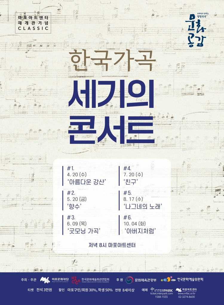 마포문화재단이 '제2의 한국 가곡 르네상스'를 꿈꾸며 기획한 공연으로, 5개 민간 예술단이 차례로 무대를 꾸민다.