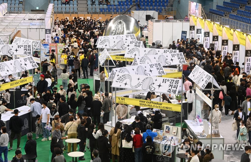 | ▲ 커피향 솔솔…강릉커피축제 (강릉=연합뉴스) 유형재 기자 = 제14회 강릉커피축제 사흘째인 9일 축제장인 강릉아레나에는 많은 관람객이 몰려 북적이고 있다. 2022.10.9 yoo21@yna.co.kr |