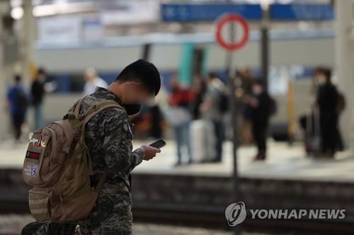 | ▲ This file photo, taken May 1, 2022, shows a service member waiting for a train at Seoul Station in central Seoul. (Yonhap) |