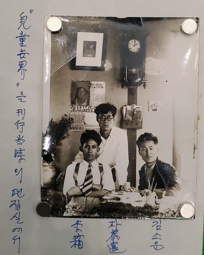 | ▲ 이상·박태원·김소운의 사진 (서울=연합뉴스) 이세원 기자 = 문학 특별전시 '이상, 염상섭, 현진건, 윤동주, 청와대를 거닐다'의 일반 관람 시작을 하루 앞두고 21일 청와대 춘추관에서 공개된 사진에 시인 이상, 소설가 박태원, 시인 김소운의 모습이 담긴 사진이 있다.(김소운 기증 자료 재촬영) |