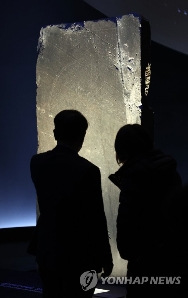 | ▲ 조선시대, 돌에 새긴 별자리 (서울=연합뉴스) 한상균 기자 = 26일 새로 단장한 국립고궁박물관 '과학문화'실에서 국보 '천상열차분야지도각석'(天象列次分野之圖刻石)을 소개하고 있다. 일반 공개는 27일부터다. 2022.12.26 xyz@yna.co.kr |