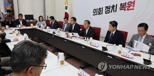 | ▲ Officials of the government and members of the ruling People Power Party hold a meeting at the National Assembly on July 26, 2023. (Yonhap) |