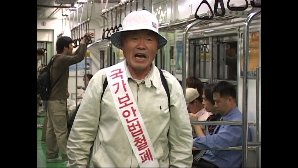 (서울=연합뉴스) 김계연 기자 = 김영식(90) 할아버지는 오늘도 노란색 어깨띠를 두르고 지하철을 탄다. 남북이 하나 되어 우리 민족끼리 화목하게 살자는 주장을 주문처럼 왼다. 통일부 청사 앞에 가서는 '통일반대부 아니냐'고 따진다.