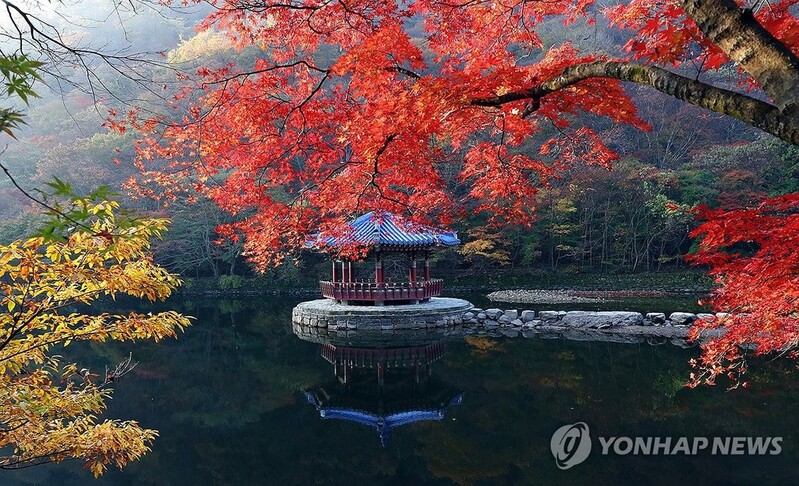 | ▲ 가을빛으로 물든 내장산 (정읍=연합뉴스) 2일 전북 정읍시 내장산의 단풍이 가을빛으로 물들어 가고 있다. 전국 최고의 단풍 명소로 꼽히는 내장산 단풍은 주말인 오는 4일부터 다음 주까지 절정에 이를 것으로 예상된다. 2023.11.2 [정읍시 제공. 재판매 및 DB 금지] sollenso@yna.co.kr |