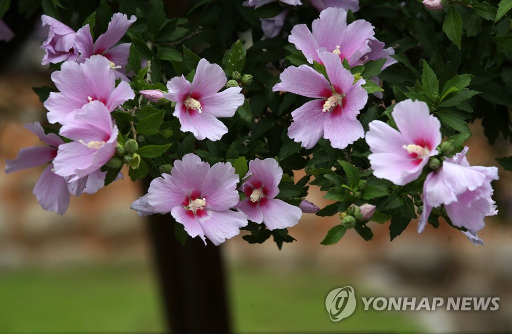 (강릉=연합뉴스) 유형재 기자 = 국내 최고령 나라꽃 무궁화나무가 요즘 계속된 무더위에도 꽃을 활짝 피웠다.