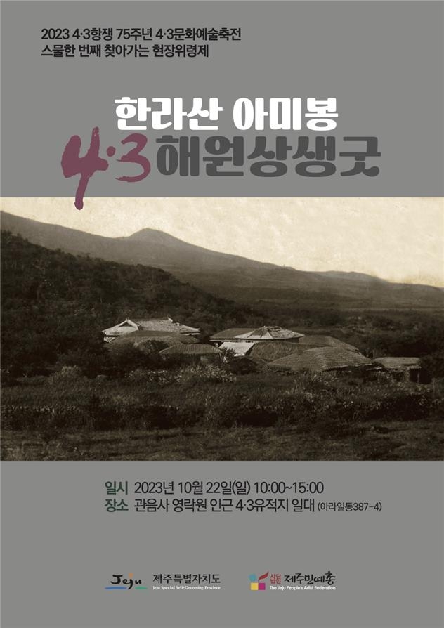 (제주=연합뉴스) 김호천 기자 = 제주민예총은 4·3항쟁 75주년을 맞아 스물한 번째 찾아가는 현장 위령제 '한라산 아미봉 해원상생굿'을 개최한다고 16일 밝혔다.