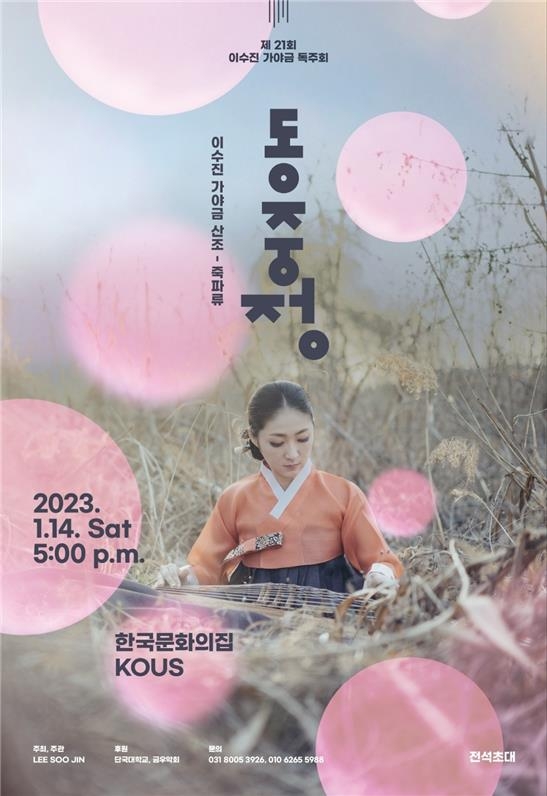 ▲ 이수진 가야금 독주회 '동중정' = 이수진 단국대 국악과 교수의 가야금 독주회 '동중정'이 오는 14일 서울 대치동 한국문화의집에서 열린다.