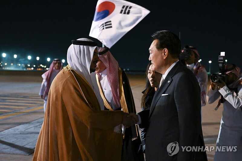 Yoon's visit comes nearly a year after the crown prince visited Seoul in November last year and the two sides agreed to further develop the bilateral relationship to a "future-oriented strategic partnership" and to establish a "strategic partnership committee" between the two leaders to more systematically pursue the two countries' cooperation projects.