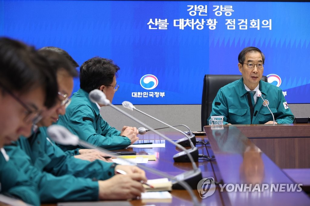Prime Minister Han Duck-soo also presided over an emergency interagency disaster response meeting in Seoul and urged all-out efforts to bring the fire under control.