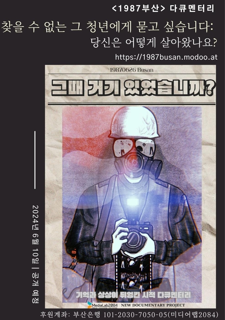 다큐멘터리 제작 후원, 제보에 관한 내용은 프로젝트 홈페이지(https://1987busan.modoo.at/) 및 텀블벅(https://tumblbug.com/1987busan)을 참고하면 된다.