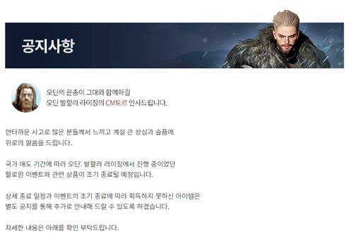 | ▲ 오딘: 발할라 라이징의 핼러윈 이벤트 종료 공지 [카카오게임즈 제공. 재판매 및 DB 금지] |