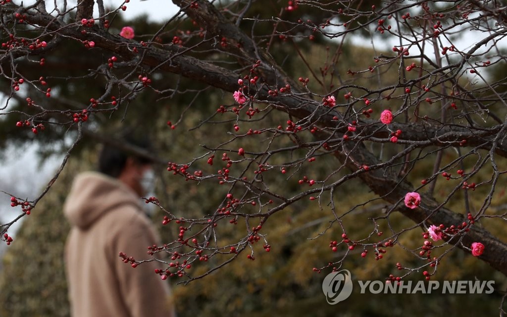 홍매화가 꽃망울을 터뜨린 유엔기념공원과 부산 시민공원 등 도심 공원을 찾은 나들이객도 많았다.