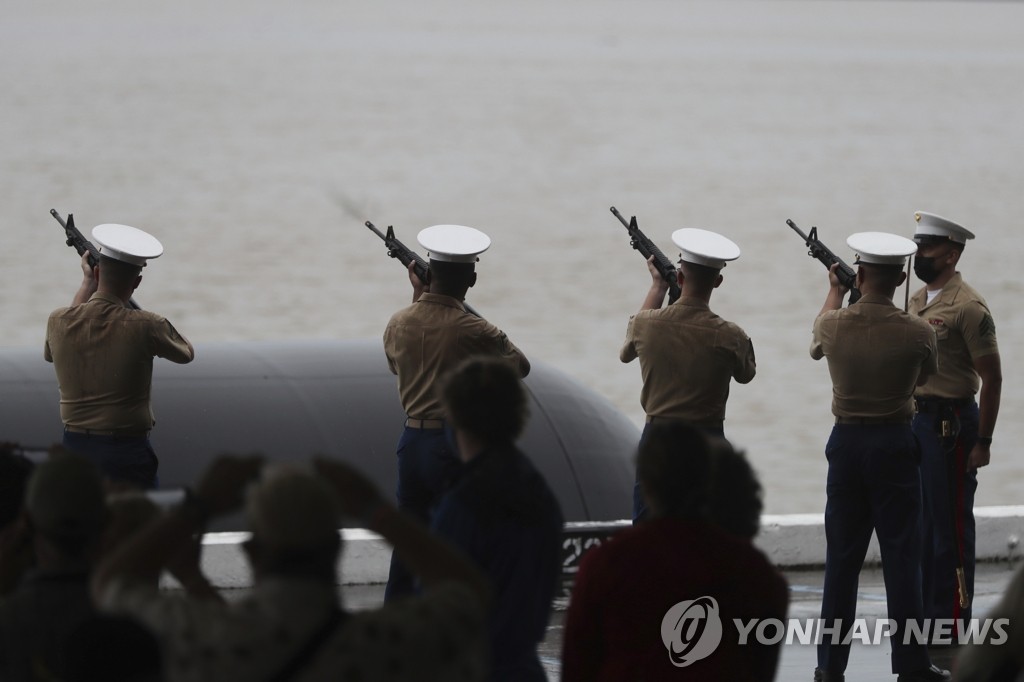 | ▲ '진주만 피습 80년' 맞아 조총 쏘는 미 해병대원들 (호놀룰루 AP=연합뉴스) '진주만 피습 80주년'인 7일(현지시간) 미국 하와이주 호놀룰루에 있는 펄하버-히캄 합동기지에서 해병대원들이 희생자들의 넋을 기리며 조총을 쏘고 있다. |
