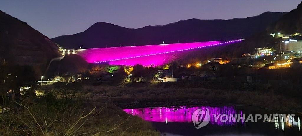 (밀양=연합뉴스) 경남 밀양시 단장면에 있는 밀양댐이 야간 경관 '맛집'으로 새롭게 태어난다.