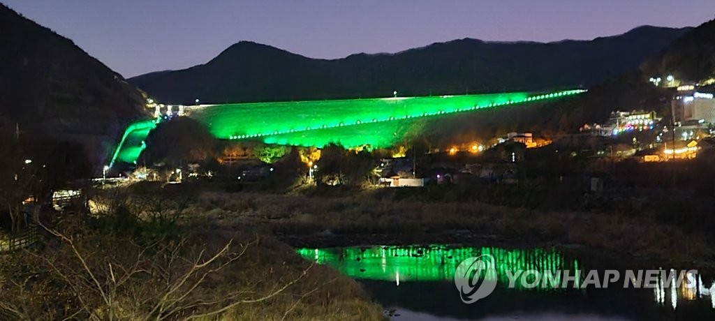 한국수자원공사는 댐 사면에 발광다이오드(LED) 조명을 설치해 사면 전체가 빨간색, 녹색, 파란색 빛이 번갈아 가며 은은하게 비치도록 했다.