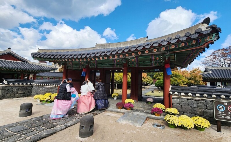 다소 쌀쌀한 날씨에도 한국의 옛 건축물과 정원을 배경으로 사진을 찍으며 여행을 즐기고 있었다.