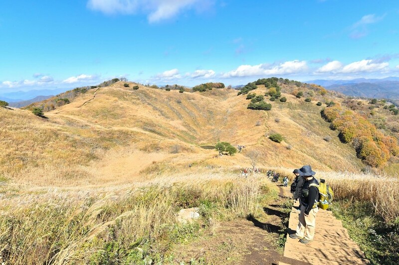 정상에 오르면 병풍처럼 주위를 둘러싼 산과 파란 가을 하늘을 배경으로 바람에 흔들리는 억새가 장관이다.