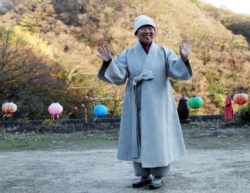 ▲ 미소짓는 정관스님 (장성=연합뉴스) 이세원 기자 = 10일 오후 전남 장성군 소재 백양사 천진암에서 정관스님이 취재진을 맞이하고 있다.