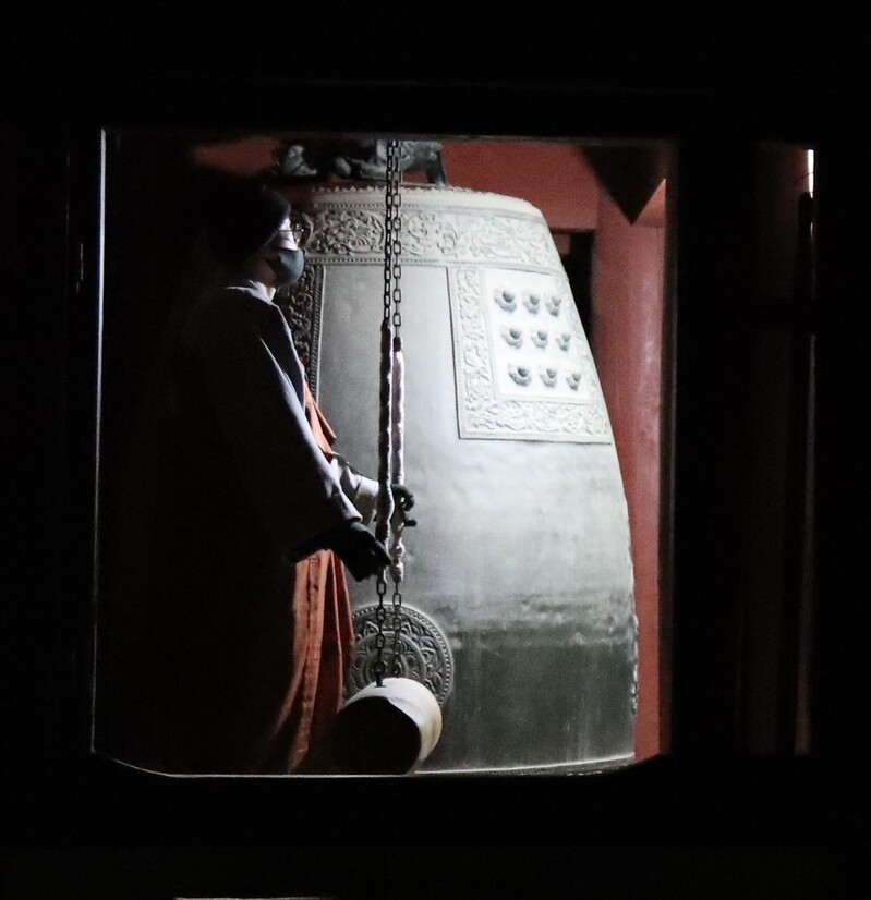 ▲ 백양사 새벽 타종 (장성=연합뉴스) 이세원 기자 = 11일 오전 전남 장성군 백양사에서 스님이 범종을 치고 있다.