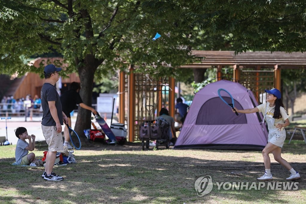 | ▲ 선선한 날씨에 가족 나들이 (서울=연합뉴스) 서대연 기자 = 선선한 초가을 날씨를 보인 28일 오전 한 가족이 서울 영등포구 여의도한강공원에서 배드민턴을 치고 있다. 2022.8.28 dwise@yna.co.kr |