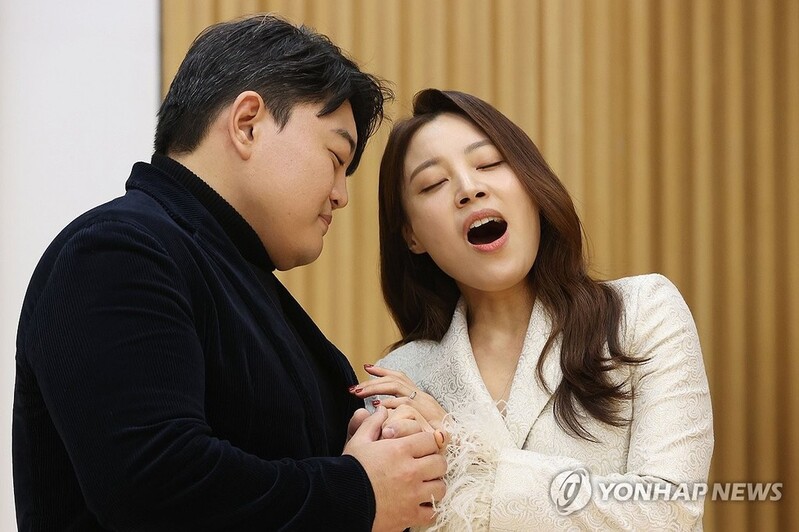 | ▲ 황수미-김정훈, 환상의 호흡 (서울=연합뉴스) 강민지 기자 = 소프라노 황수미와 테너 김정훈이 7일 오후 서울 종로구 세종문화회관 예술동에서 열린 오페라 '라보엠' 제작발표회에서 공연 일부를 선보이고 있다. 2024.11.7 mjkang@yna.co.kr |