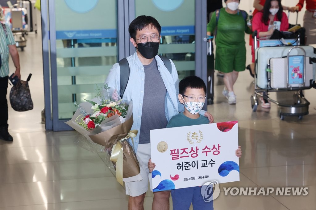 YEONGJONG ISLAND, South Korea, July 8 (Yonhap) -- June Huh, the Korean American mathematician who won this year's prestigious Fields Medal, said Friday he is "happy and delighted" to win the award and pledged to play a greater role in advancing the field of mathematics in South Korea.