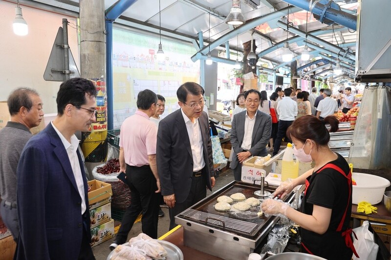 이어 양 청장과 간부·직원들은 시장 곳곳을 둘러보면서 시장 상인들의 애로·건의 사항 등 현장의 소리를 경청하고 격려했다.