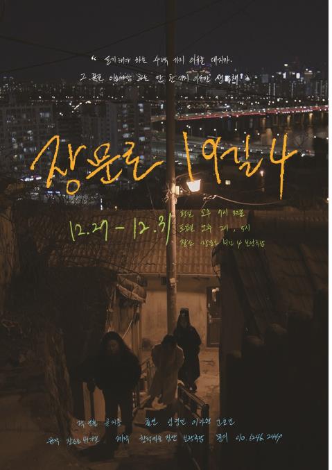 ▲ 연극 '장문로19길4' = 시인, 작가, 연극 배우 등 젊은 예술가들의 꿈과 애환을 그린 연극 '장문로 19길 4'가 오는 27∼31일 서울 용산구 보광극장에서 공연된다.