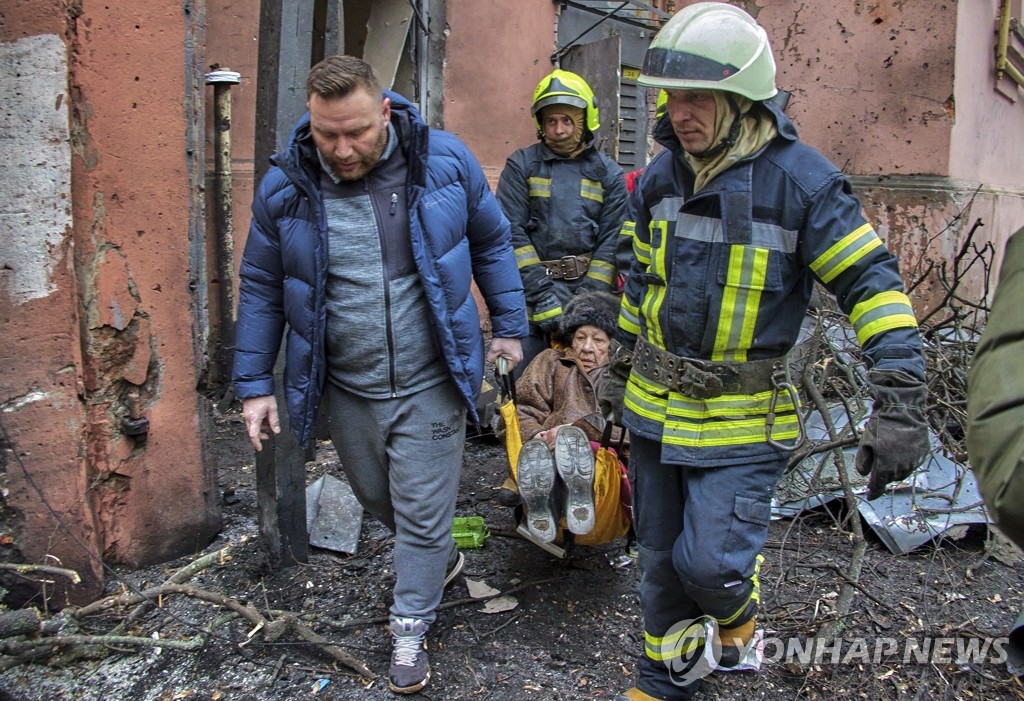 | ▲ 러'군 공격으로 부상한 하르키우 주민 구조하는 대원들 (하르키우 EPA=연합뉴스) 5일(현지시간) 러시아군 미사일 공격으로 파괴된 우크라이나 북동부 하르키우의 한 주택에서 구조대원들이 부상한 여성을 옮기고 있다. 올레그 시네그보우 하르키우 주지사는 텔레그램 계정에 "하루키우 도심에 러시아 미사일 두 발이 떨어져 최소 4명이 다쳤다"고 썼다. 하르키우와 주변 지역은 지난해 2월 우크라이나 침공을 시작한 러시아군의 집중포격 대상이 돼 왔다. 2023.02.07 yerin4712@yna.co.kr |