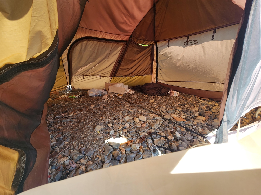 | ▲ 내부는 텅 비어 있는 텐트. [손형주 기자] |