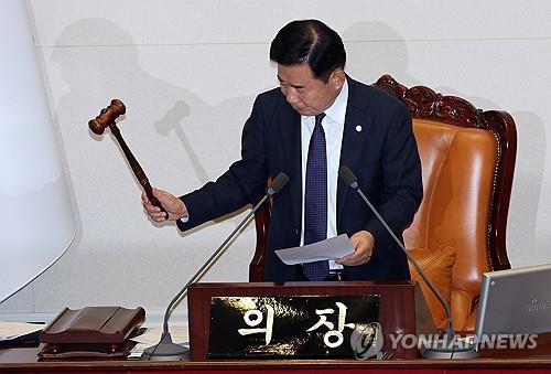 Chung presided over the meeting, as the party's floor leader Park Kwang-on, Secretary General Cho Jung-sik and other officials had offered to resign, taking responsibility for the passage of the motion