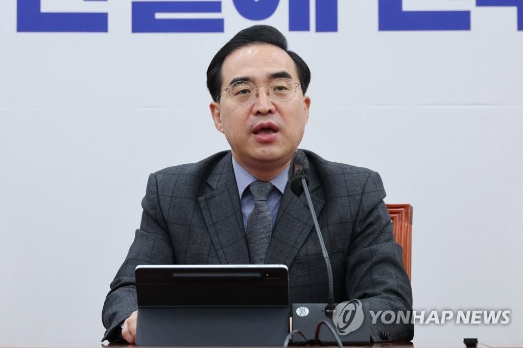 "I believe that the people and party members will come together so that Chairman Lee can bravely overcome the unjust oppression," DP floor leader Park Hong-keun said in a party policy coordination meeting.
