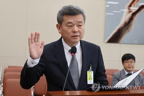 ▲ Park Min, a former editorial writer at the Munhwa Ilbo daily newspaper, takes an oath during a parliamentary confirmation hearing as a candidate for the new head of public broadcaster KBS at the National Assembly in Seoul on Nov. 7, 2023. (Yonhap)