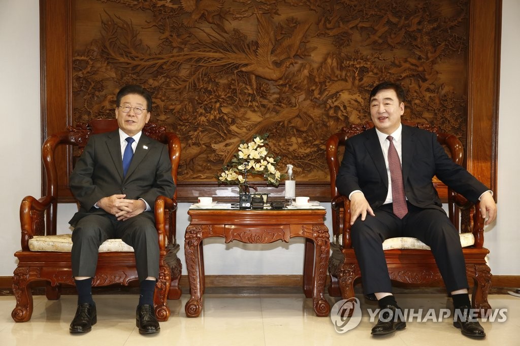 | ▲ Lee Jae-myung (L), leader of the main opposition Democratic Party, talks with Chinese Ambassador to South Korea Xing Haiming during their meeting at the envoy's residence in Seoul on June 8, 2023. (Pool photo) (Yonhap) |