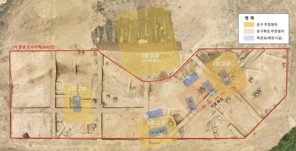이 가운데 4호·6호·9호 고분은 흙을 쌓아 올려 만드는 언덕 형태의 분구를 만든 뒤 가장자리에 도랑 형태의 시설인 주구(周溝)를 두른 것으로 조사됐다.