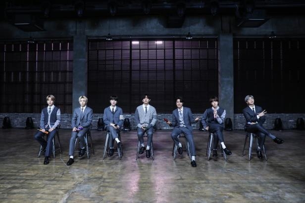 All seven members -- including Suga who had taken a temporary break due to a shoulder surgery -- appeared in a room filled with neon signs, arcade games and darts, where they playfully performed the song.