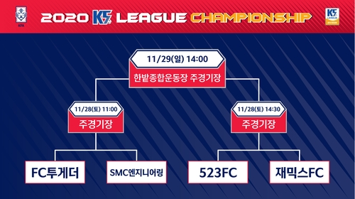 (서울=연합뉴스) 이영호 기자 = 생활축구 K5리그의 최강자를 가리는 '2020 K5리그 챔피언십' 4강 대진이 완성됐다.